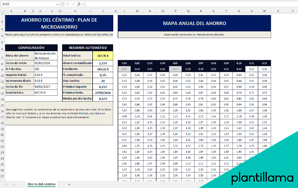 También te conviene usarla como un apoyo visual para mantener el hábito y revisar tu progreso de un vistazo. Así podrás adaptar mejor tu plan de ahorro a tu economía diaria, detectar si vas al ritmo previsto y mantener un seguimiento más realista de tus pequeñas aportaciones, algo especialmente útil cuando buscas un ahorro progresivo sin complicarte con cálculos ni con un control de gastos demasiado complejo.