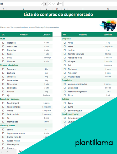 Lista de compras de supermercado completa en Excel