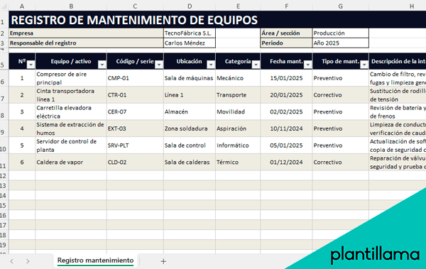 Plantilla excel para mantenimiento