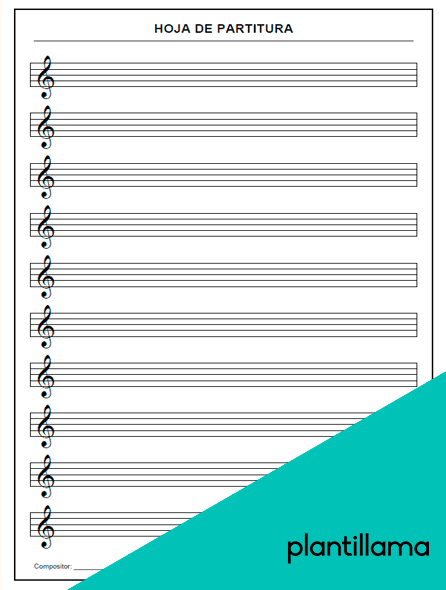 Incluye un encabezado superior y un espacio al final para indicar el nombre del compositor.